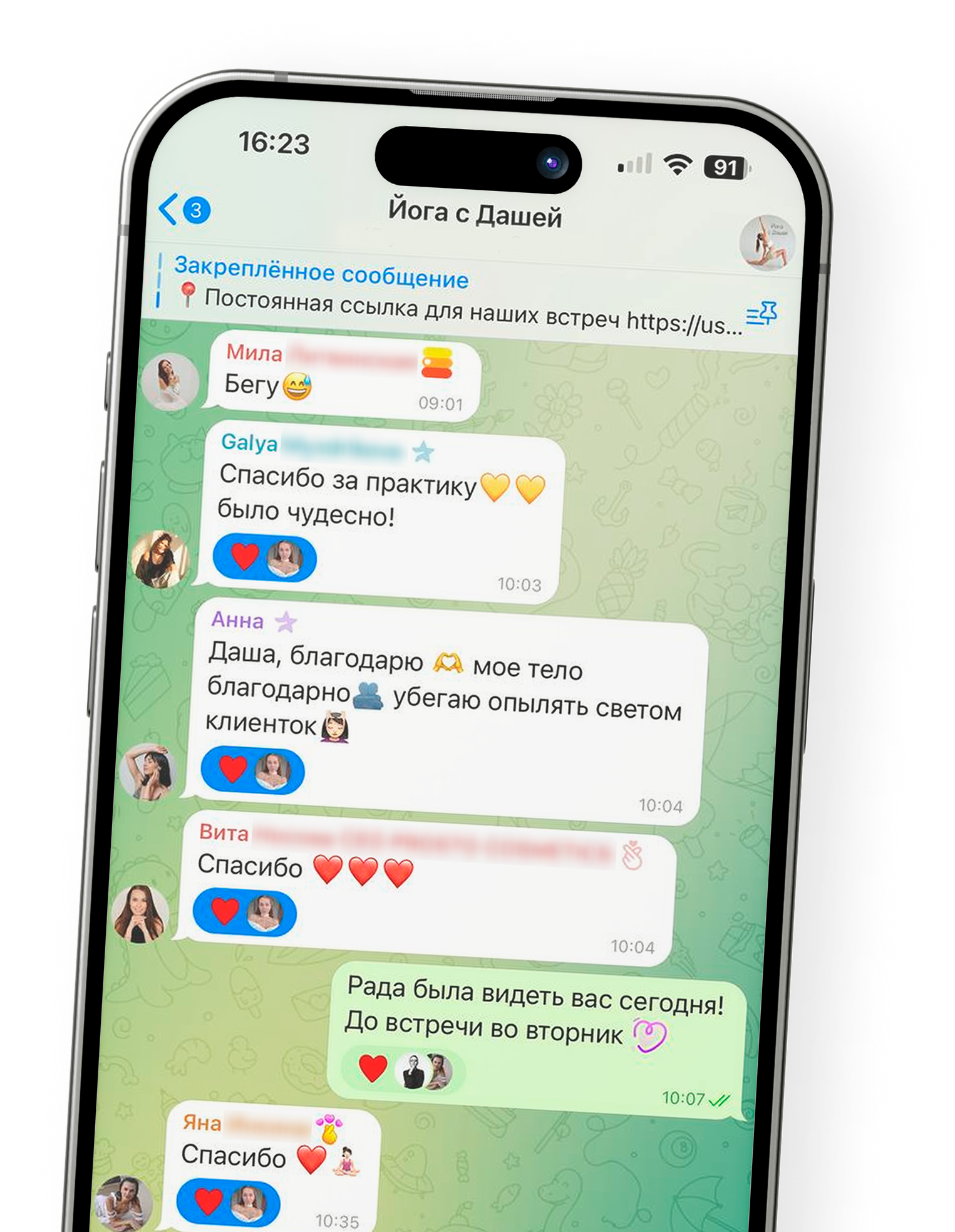 Каждая встреча включает в себя дыхательную практику, последовательность на работу с телом и медитативное расслабление в конце.